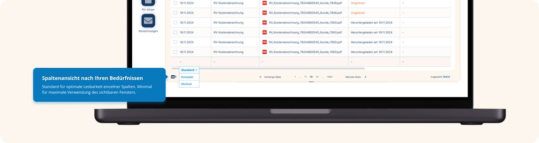 – Optimierte Ansichten der Rechnungseinreichung, Tabellen und Detailseiten